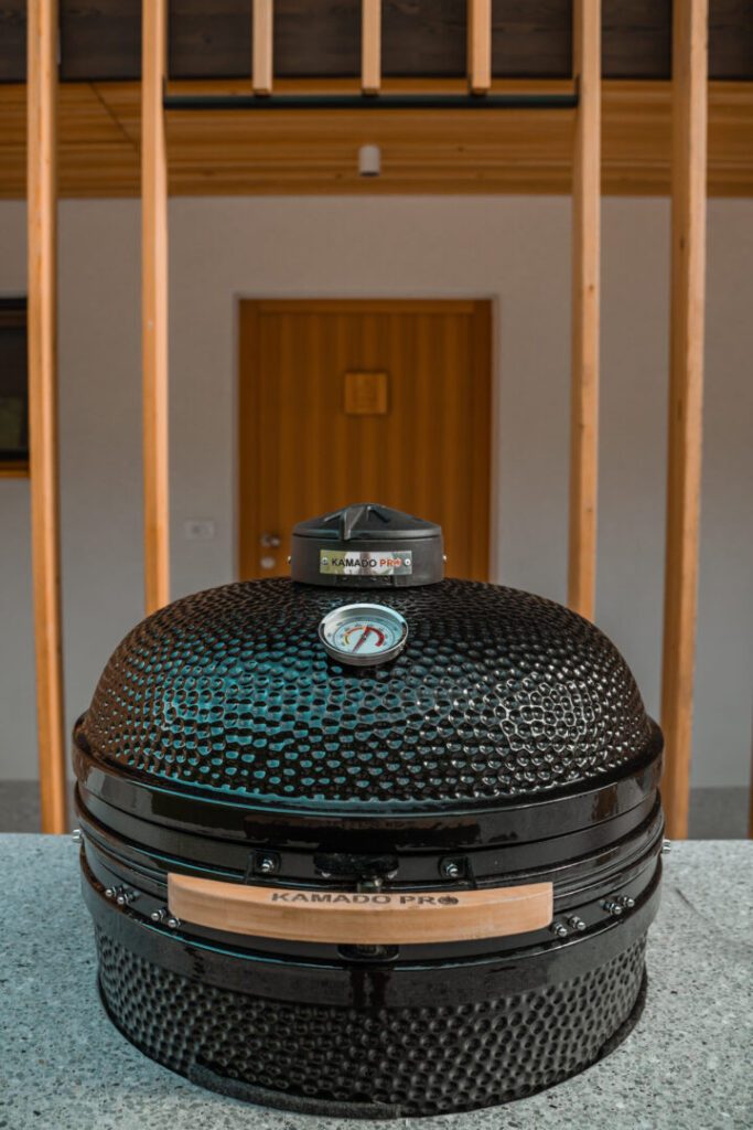 V letni kuhinji je na voljo keramični žar Joe BigJoe – žar, smoker in pečica v enem, pripravljen za uporabo že v 15 minutah. Dobre 3 cm debela robustna keramika odlično regulira in vzdržuje toploto žara in vam omogoča peko tako pri nizkih kot pri izredno visokih temperaturah (82–400 in več stopinj). Izjemna poroznost keramike odlično vzdržuje vlago mesa, zato je pečena hrana neverjetno sočna, obogatena s pravo aromo žara. Zaradi velikosti bo BigJoe II prva izbira vseh ljubiteljev polnih miz in navdušencev peke na žaru.